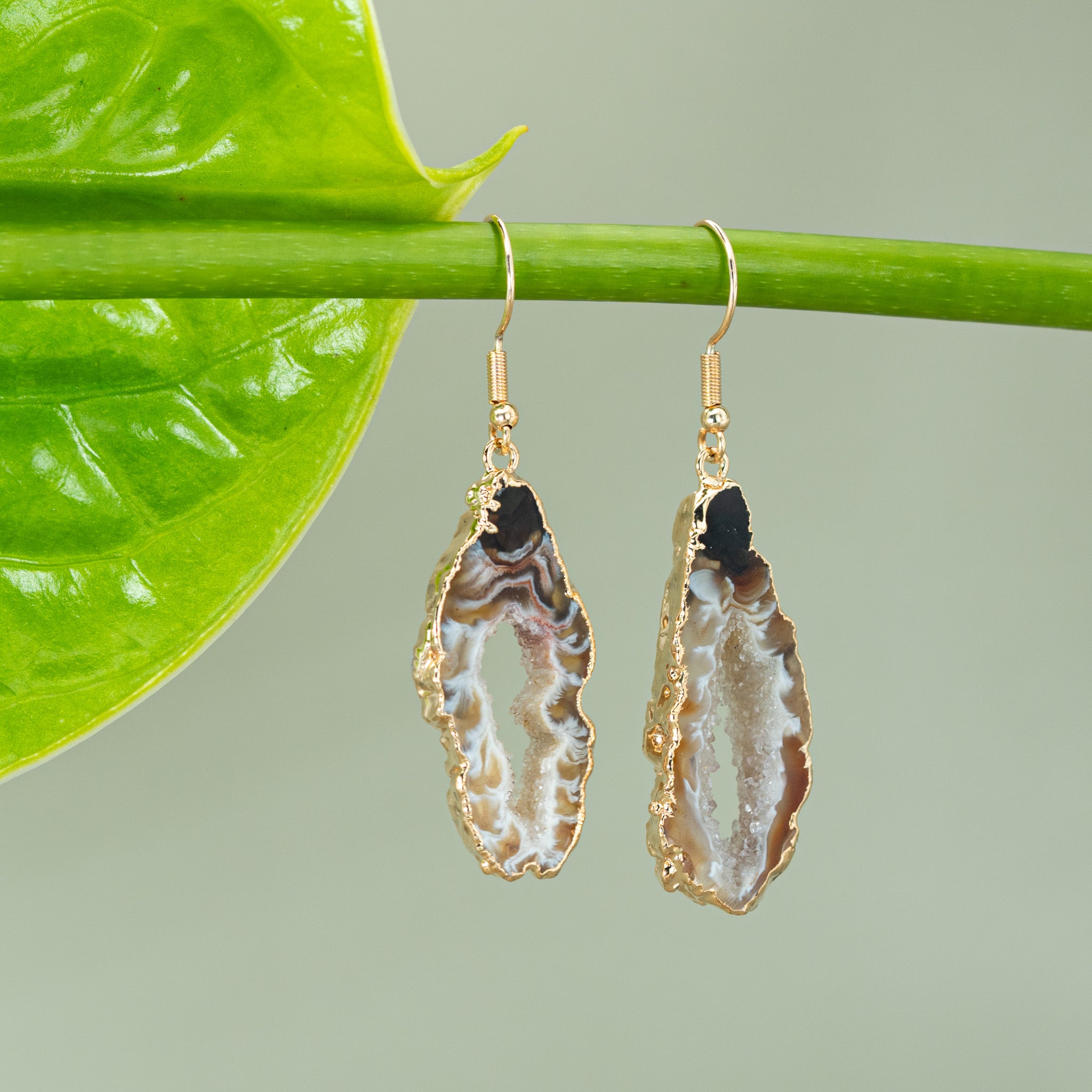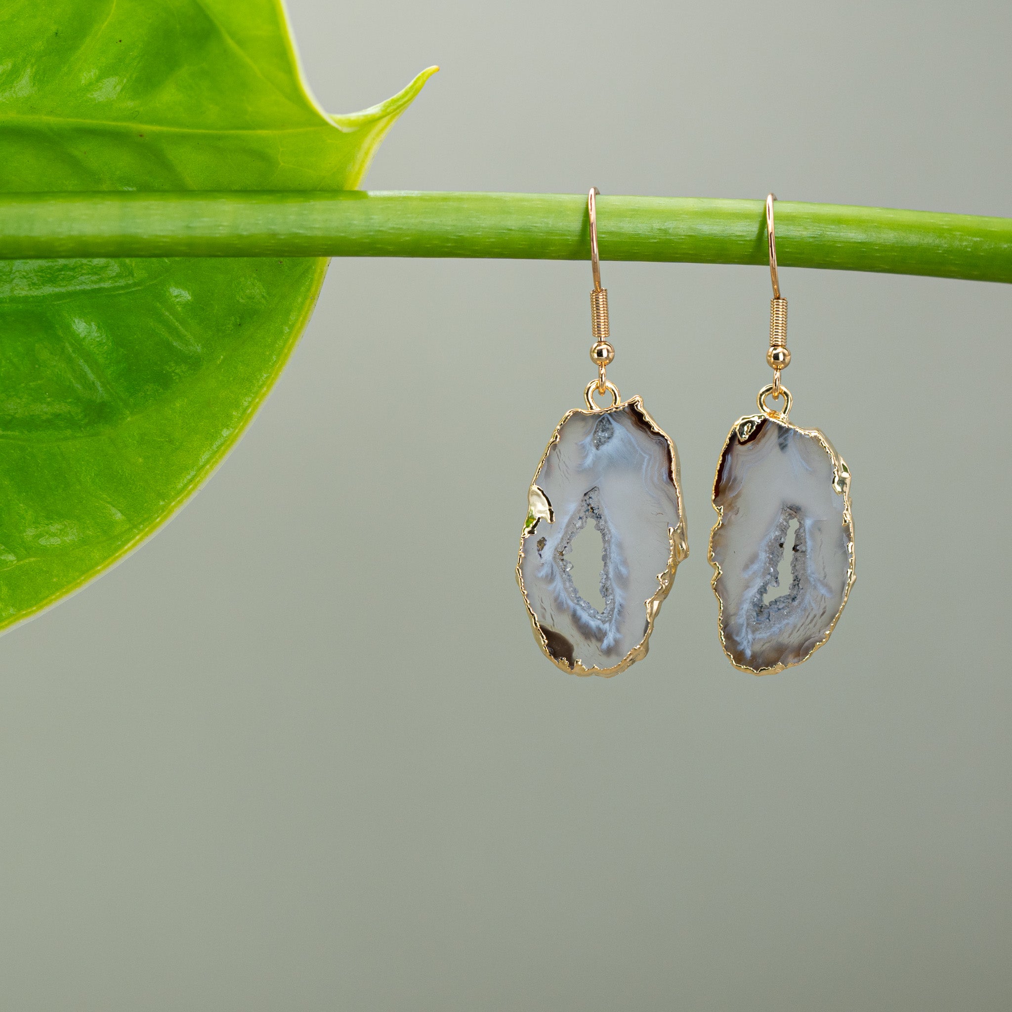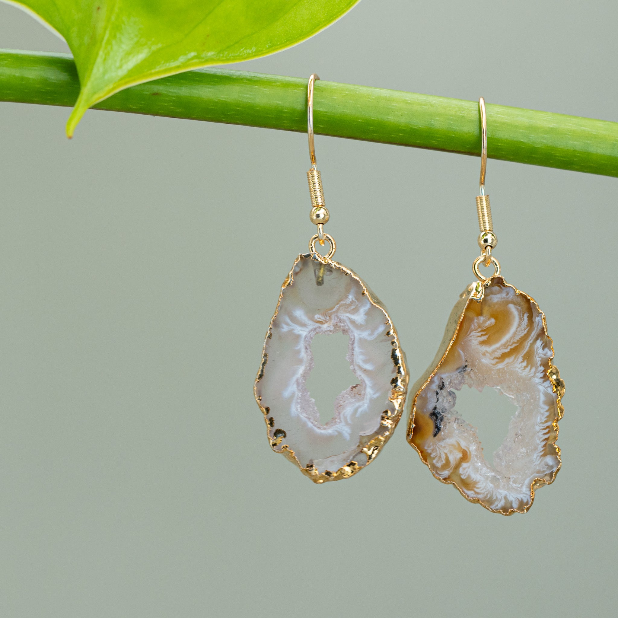 Add a touch of elegance to your look with our Light Agate drop earrings. These earrings in a classy 18K gold-plated setting combine natural beauty with timeless style.
