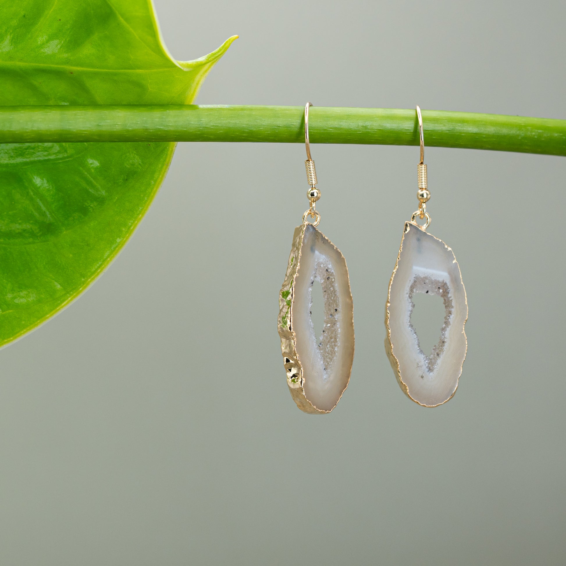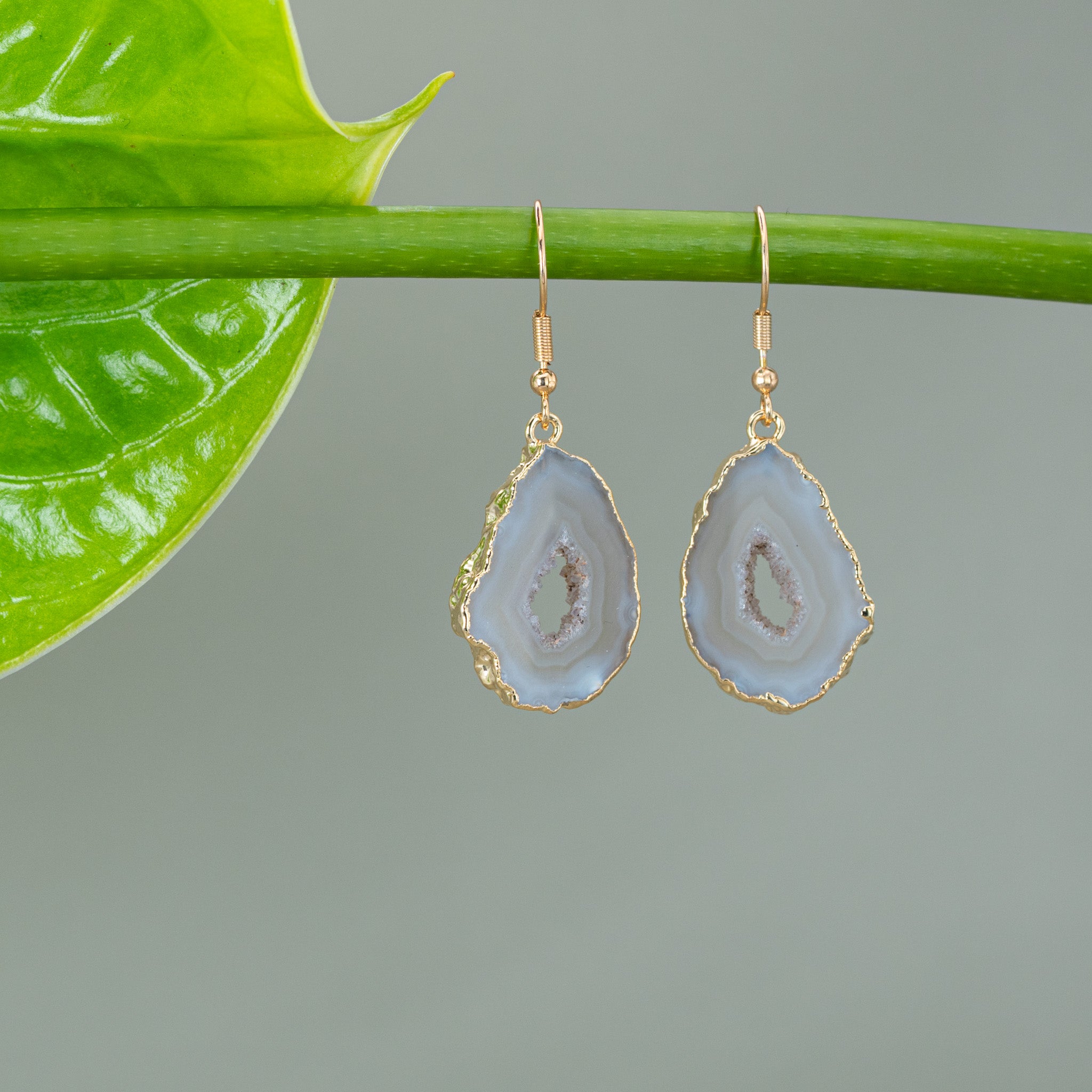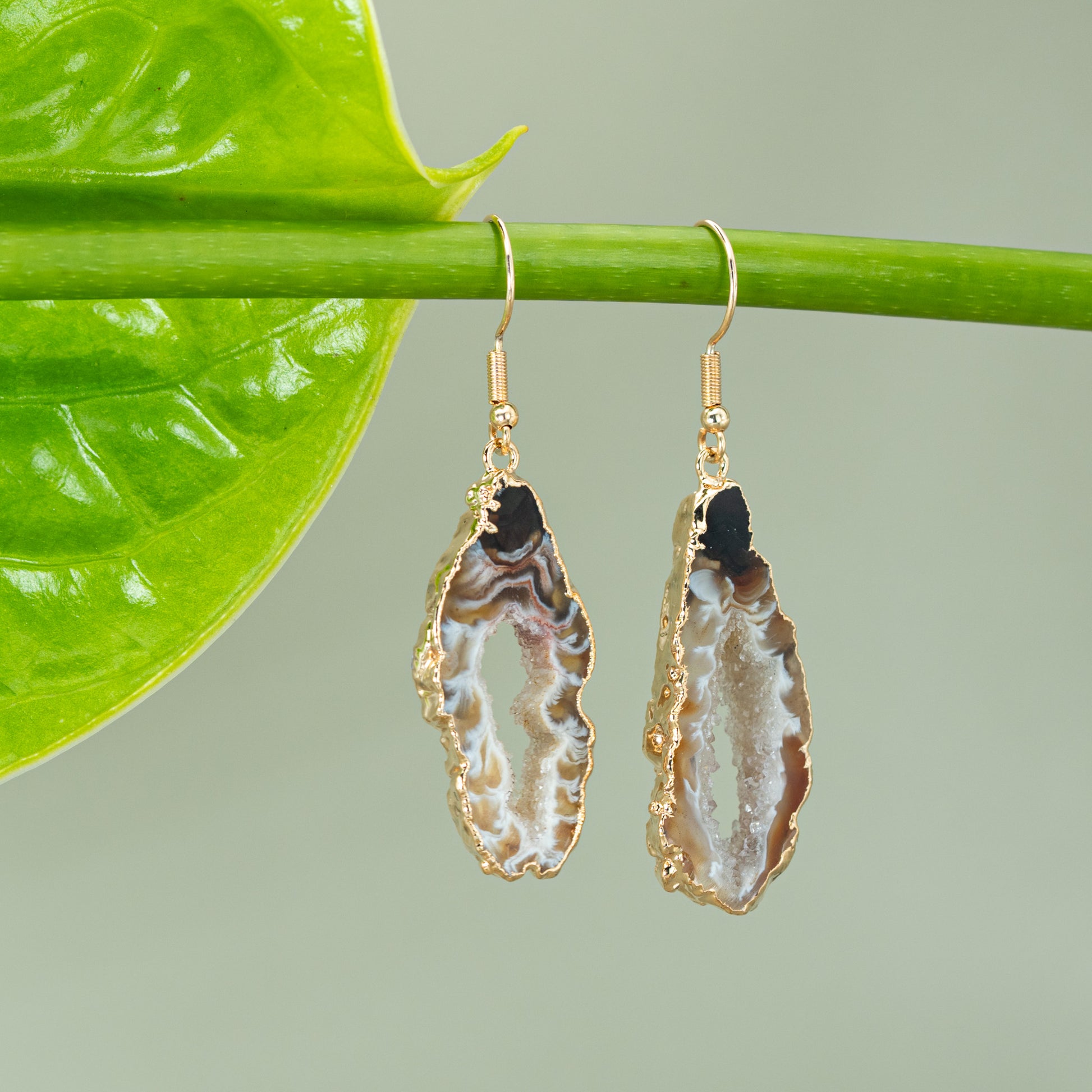 Add a touch of elegance to your look with our Light Agate drop earrings. These earrings in a classy 18K gold-plated setting combine natural beauty with timeless style.