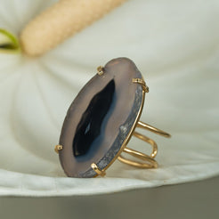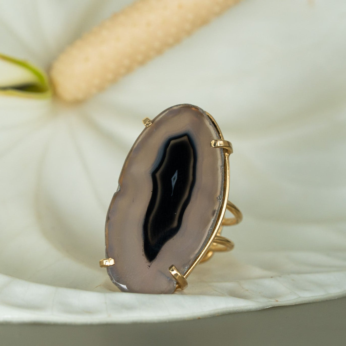 Agate ring – 18K gold-plated or silver-plated, adjustable size