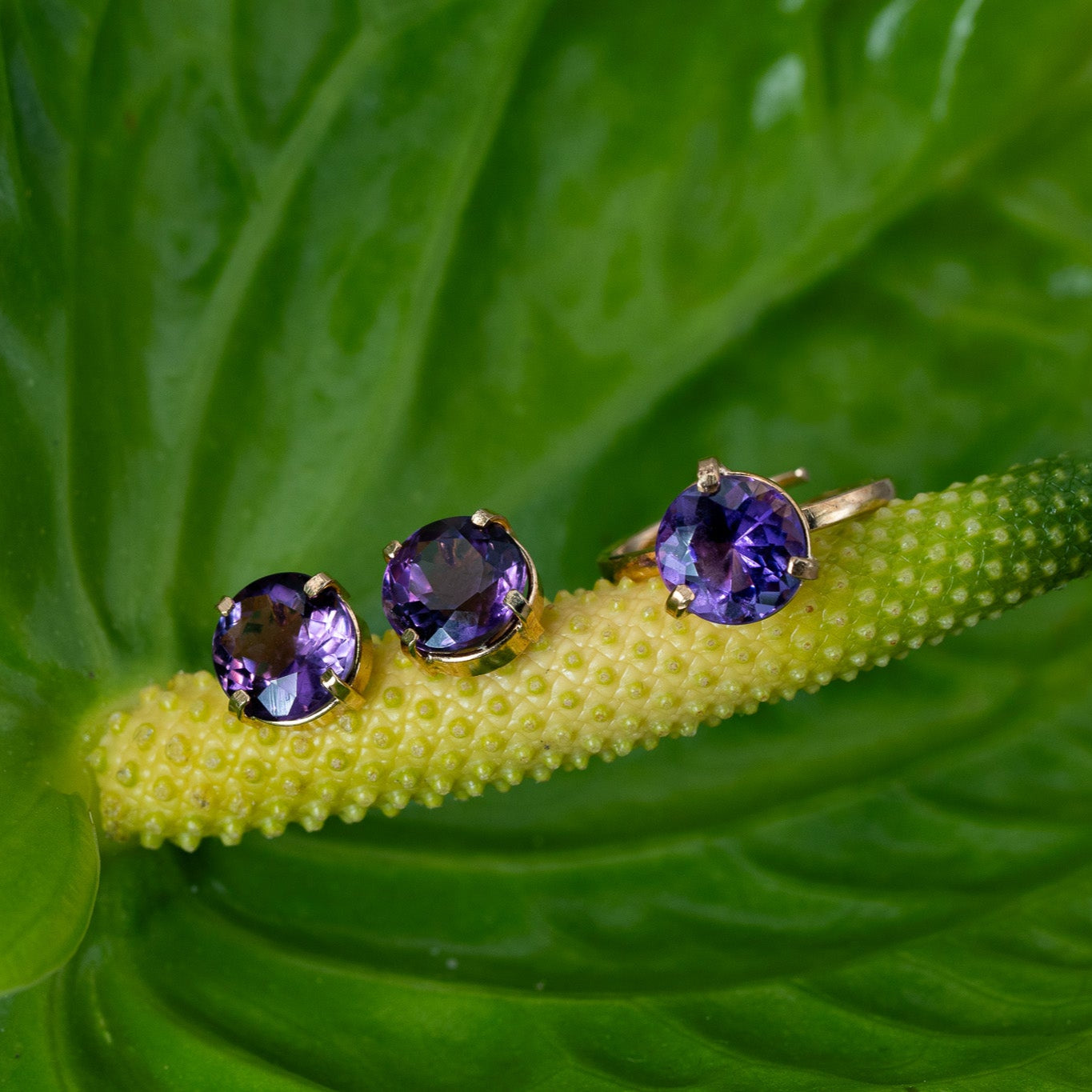 Premium Amethyst Set Ring & Earrings
