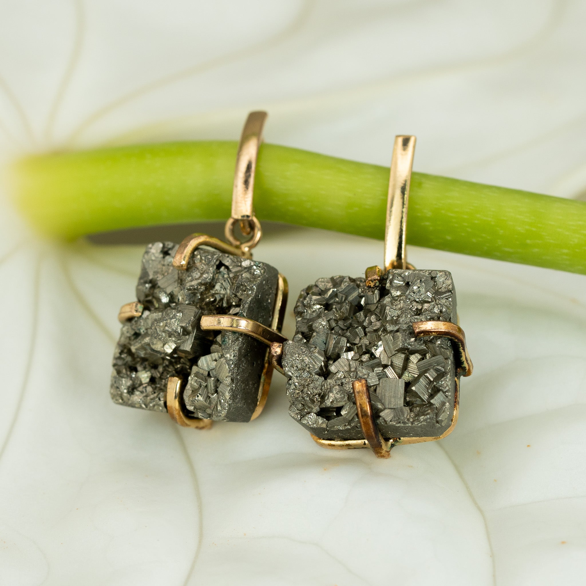 Pyrite Earrings – 18K Gold Plated Setting, Nickel Free