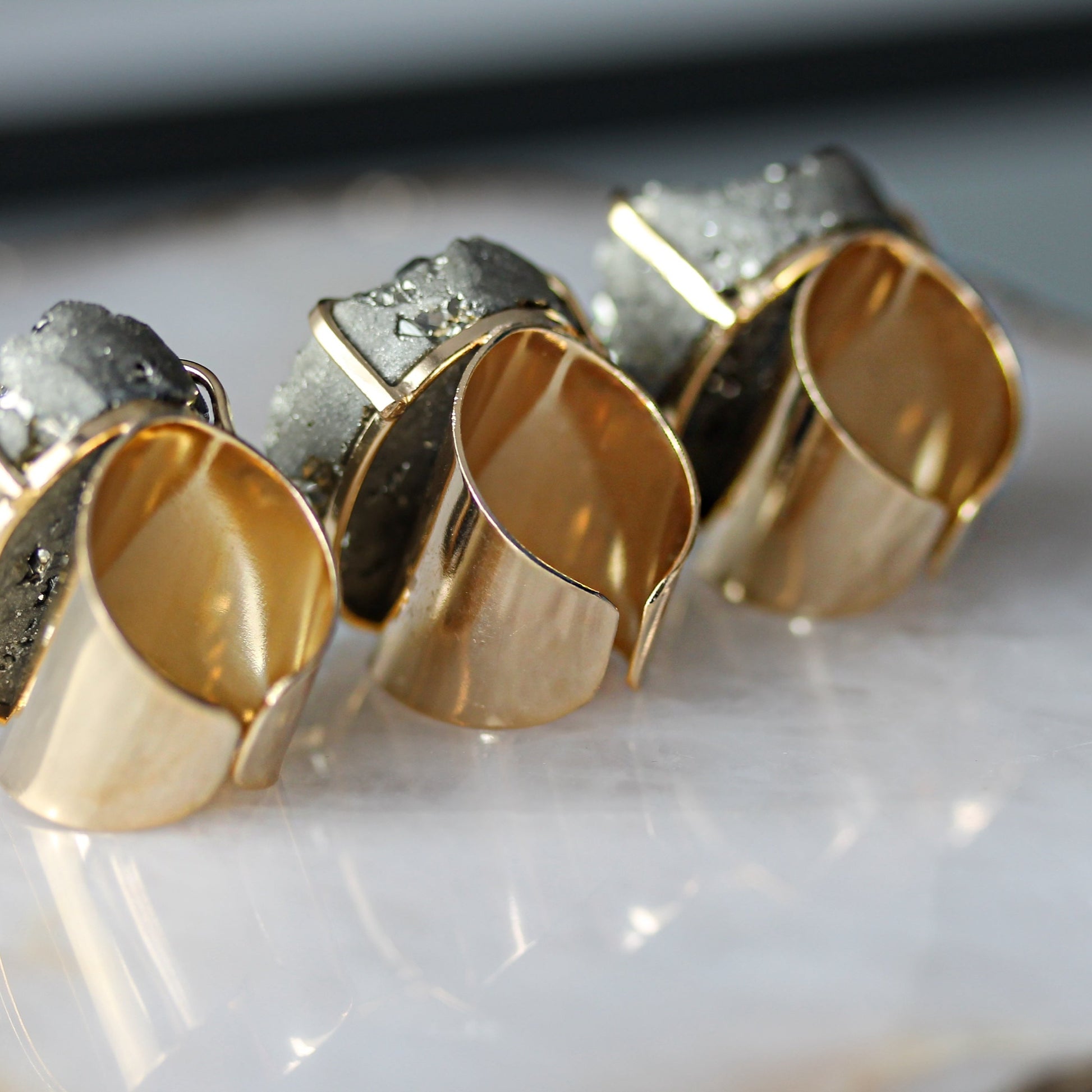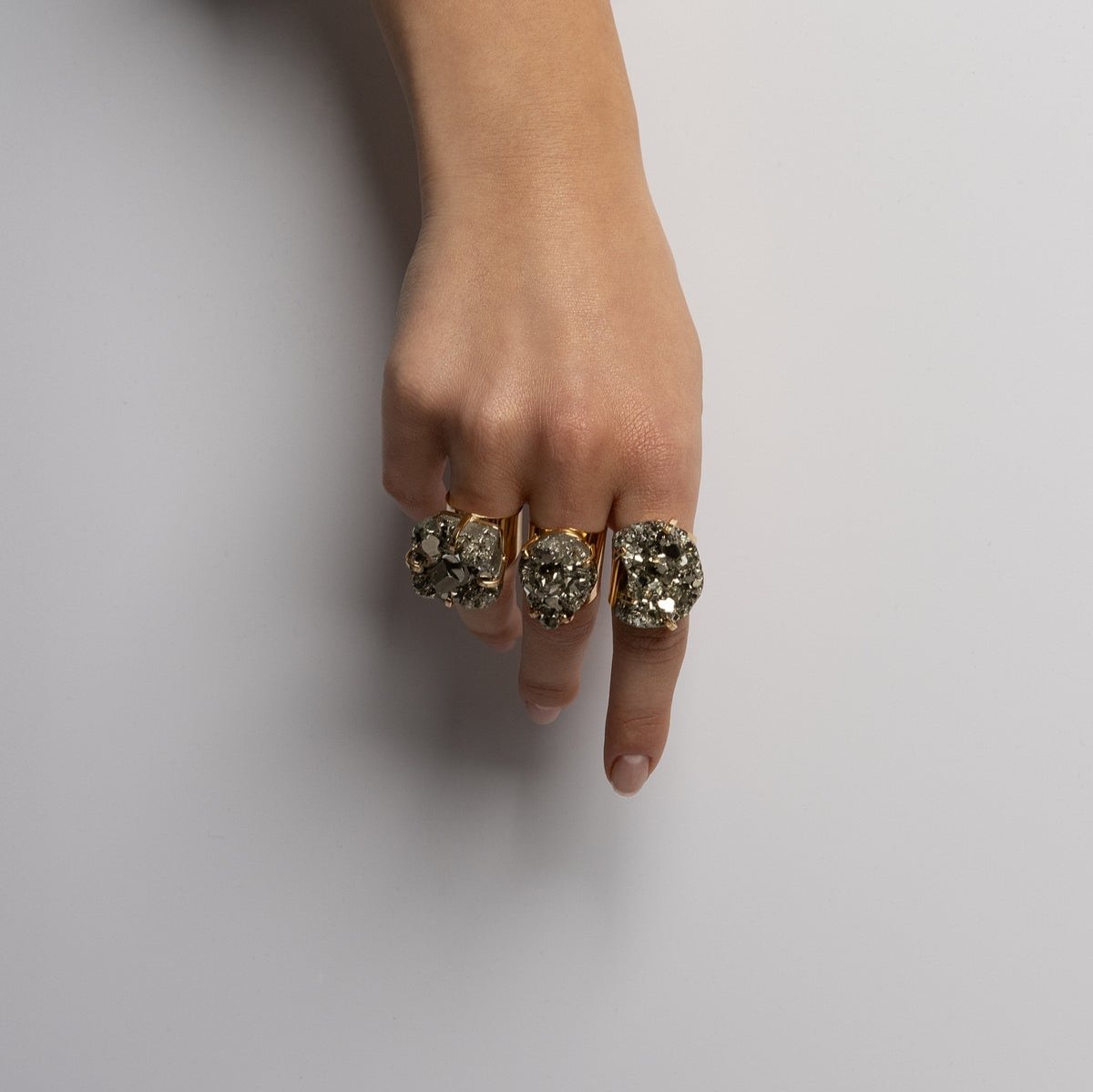 Discover the magical beauty of our Pyrite Ring, plated in 18K gold ...