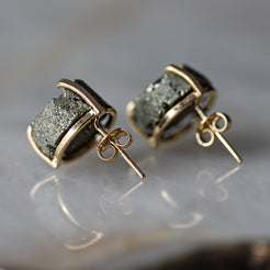 Pyrite round stud earrings – 18K gold-plated or silver-plated, nickel-free