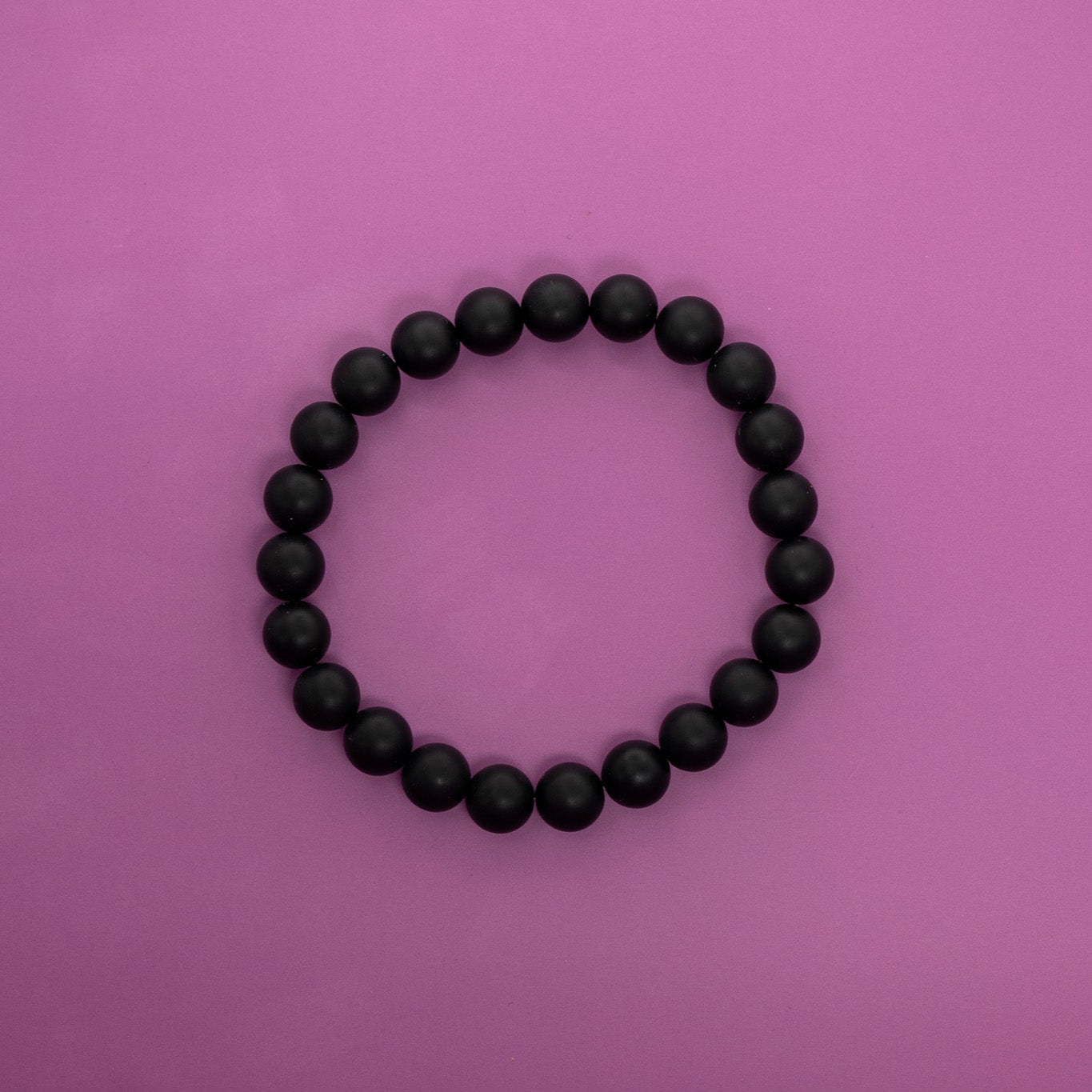 This elegant bracelet is made of black agate beads with a matte finish and adds a subtle, stylish touch to your look....