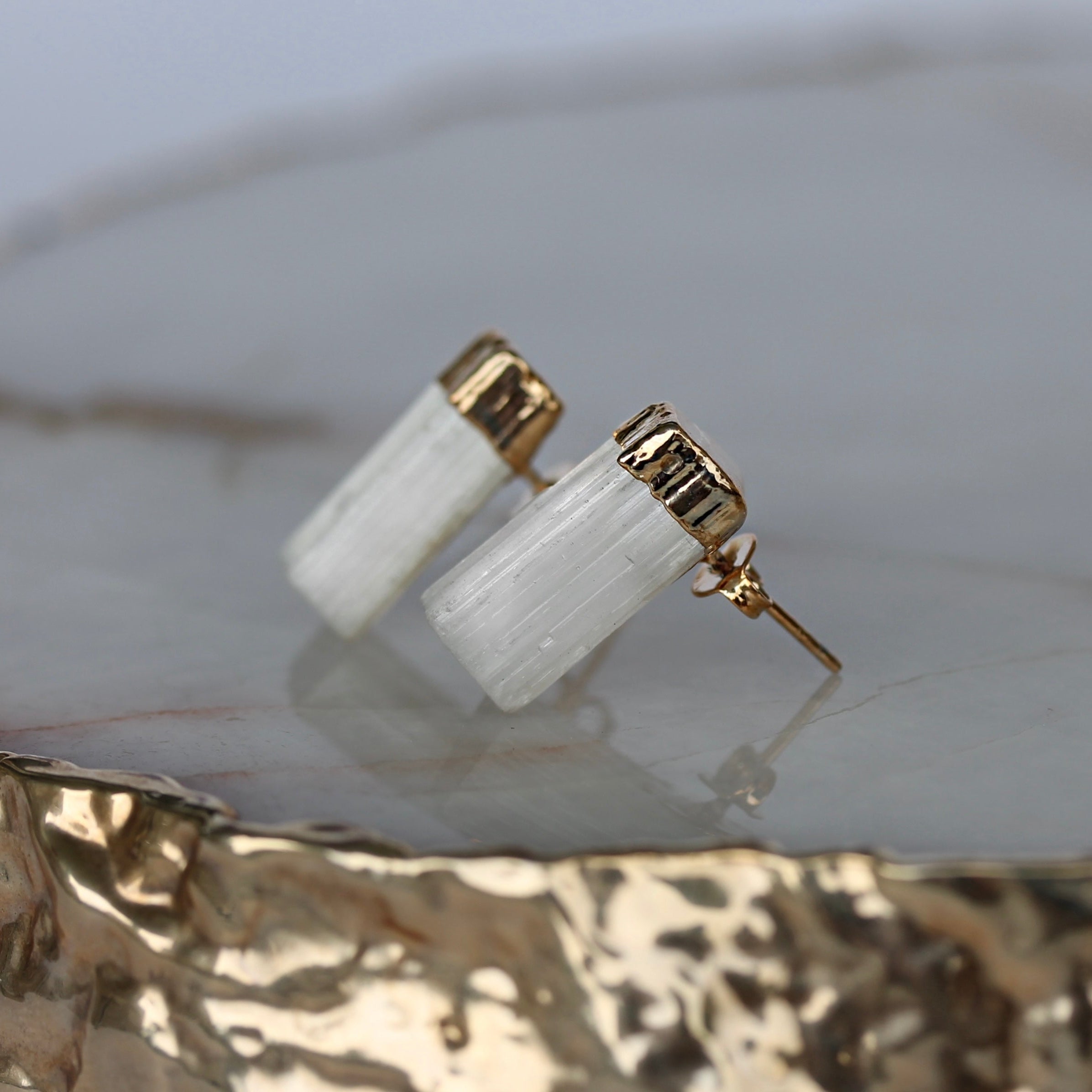 Selenite Ring – Adjustable Size, 18K Gold Plated or Silver Plated, Nickel Free