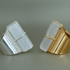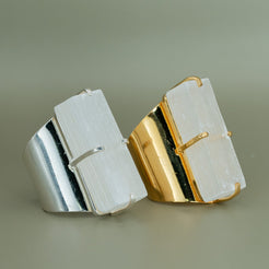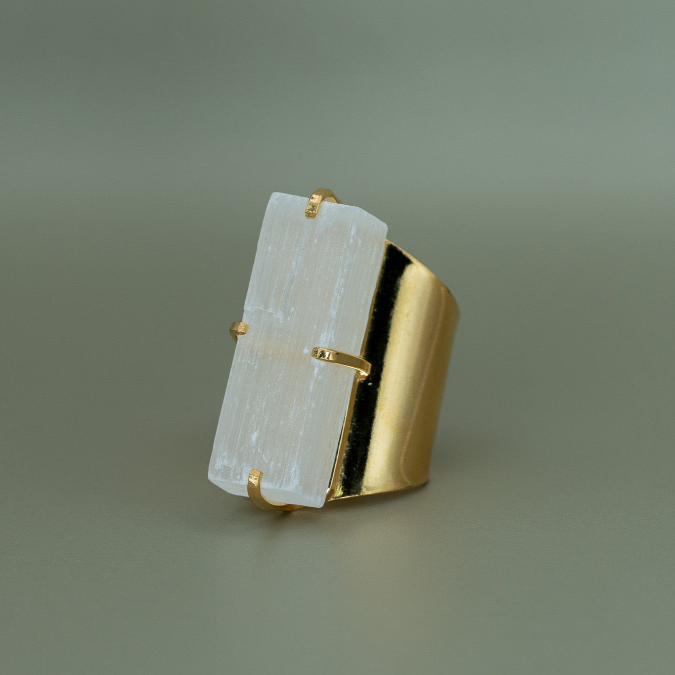 Selenite Ring – Adjustable Size, 18K Gold Plated or Silver Plated, Nickel Free