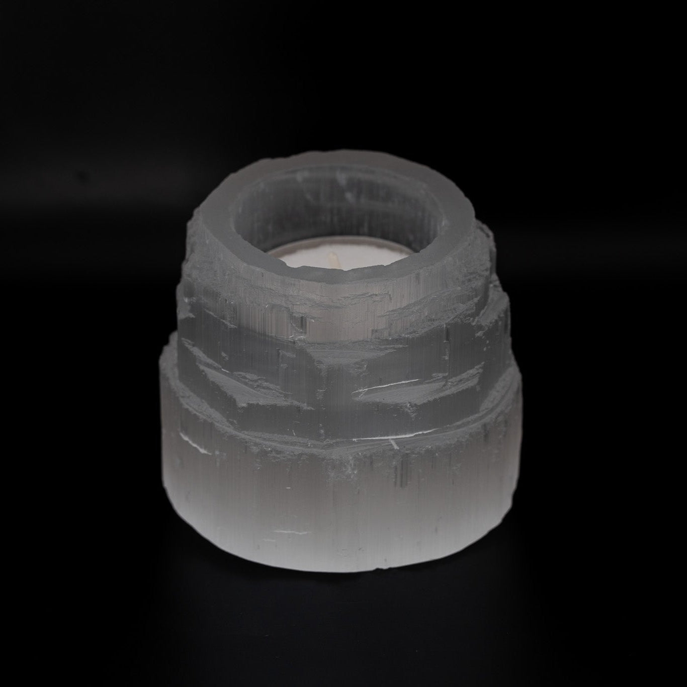 Create a warm, calming atmosphere with our handcrafted selenite tealight holder . The soft light of the tealight comb...