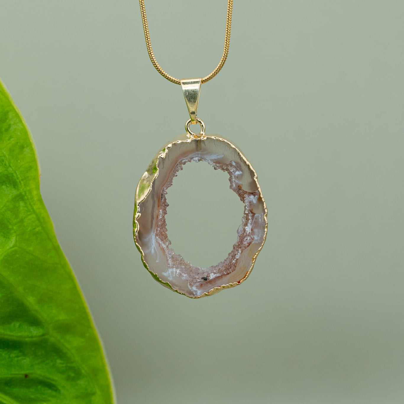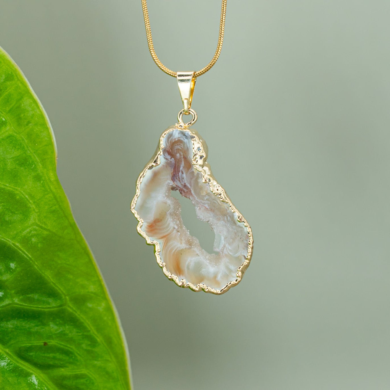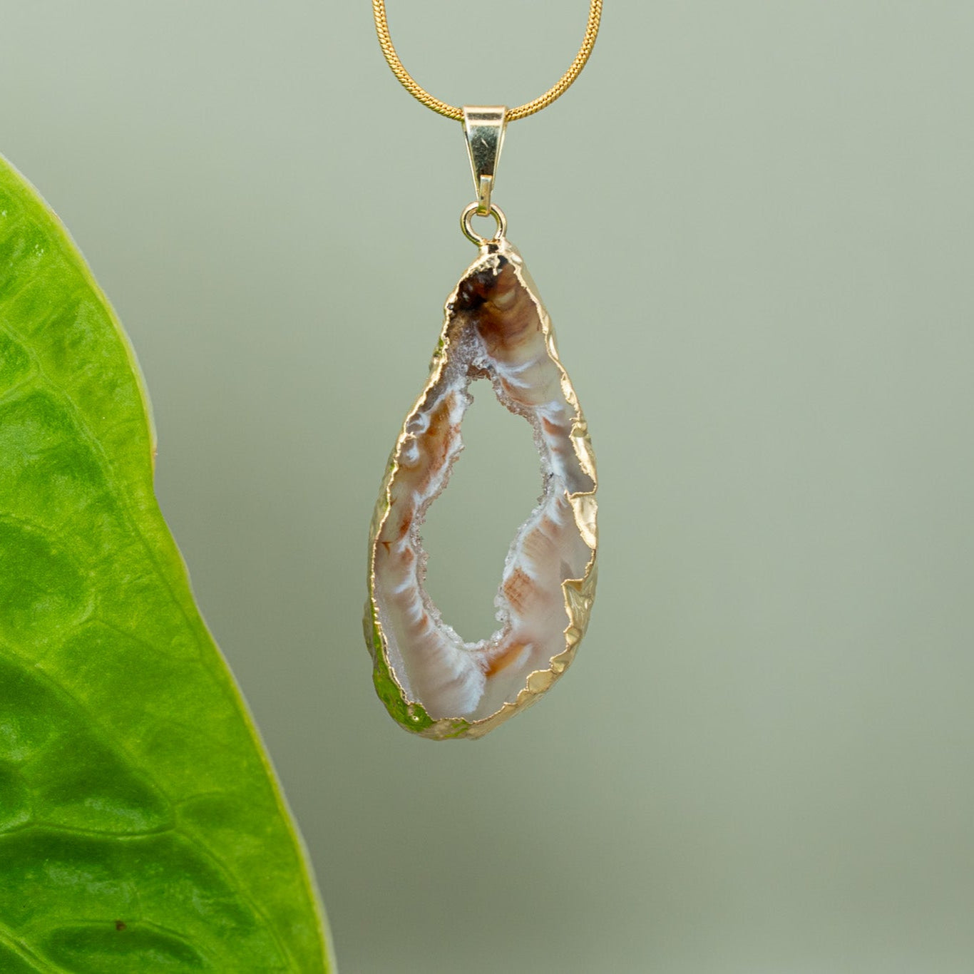 Ein handverlesenes Agate Amulett, 18K vergoldet, kombiniert mit einer hochwertigen, vergoldeten Edelstahlkette (verstellbar bis 45 cm). Wähle dein Lieblingsstück – du erhältst genau das, was du siehst.