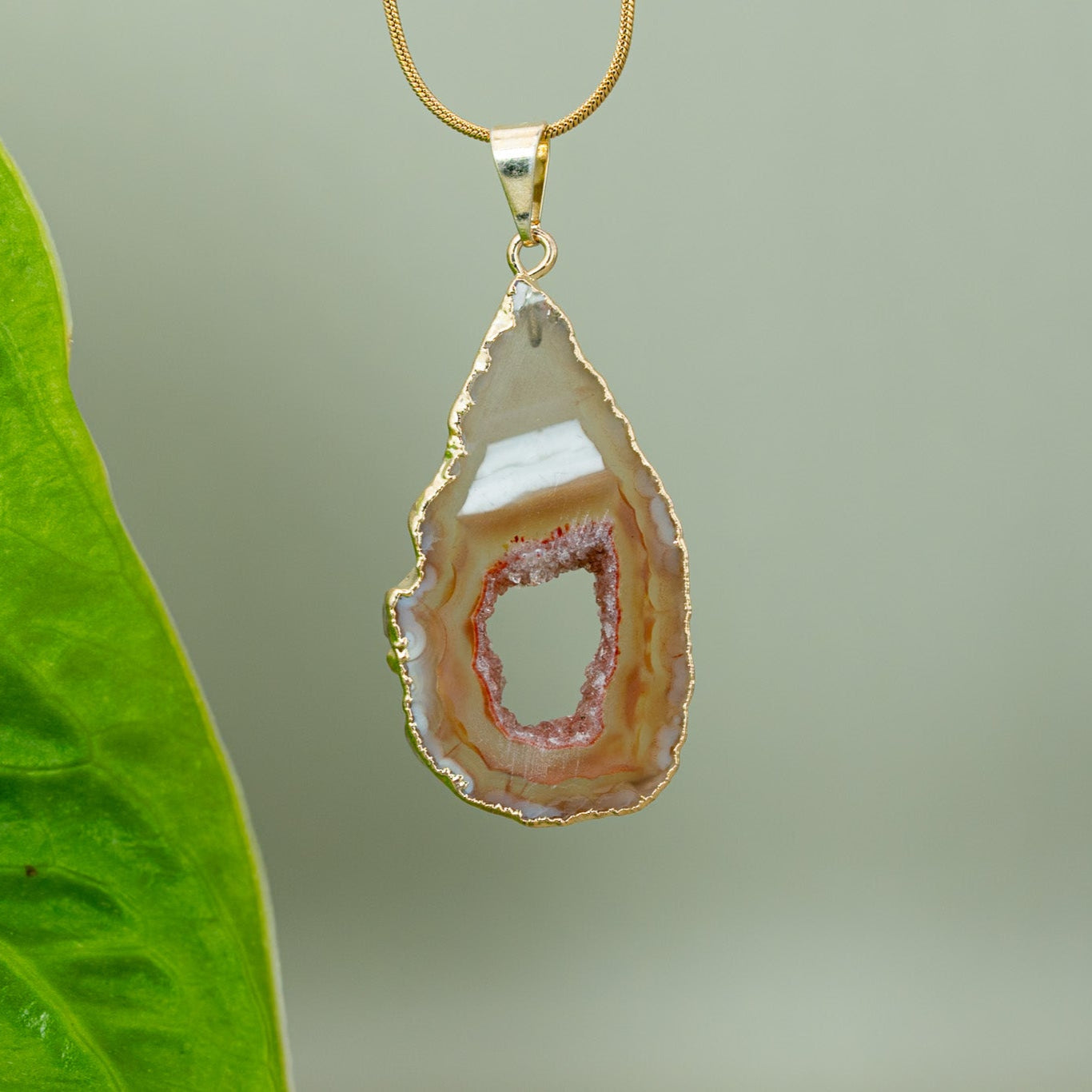 Ein handverlesenes Agate Amulett, 18K vergoldet, kombiniert mit einer hochwertigen, vergoldeten Edelstahlkette (verst...