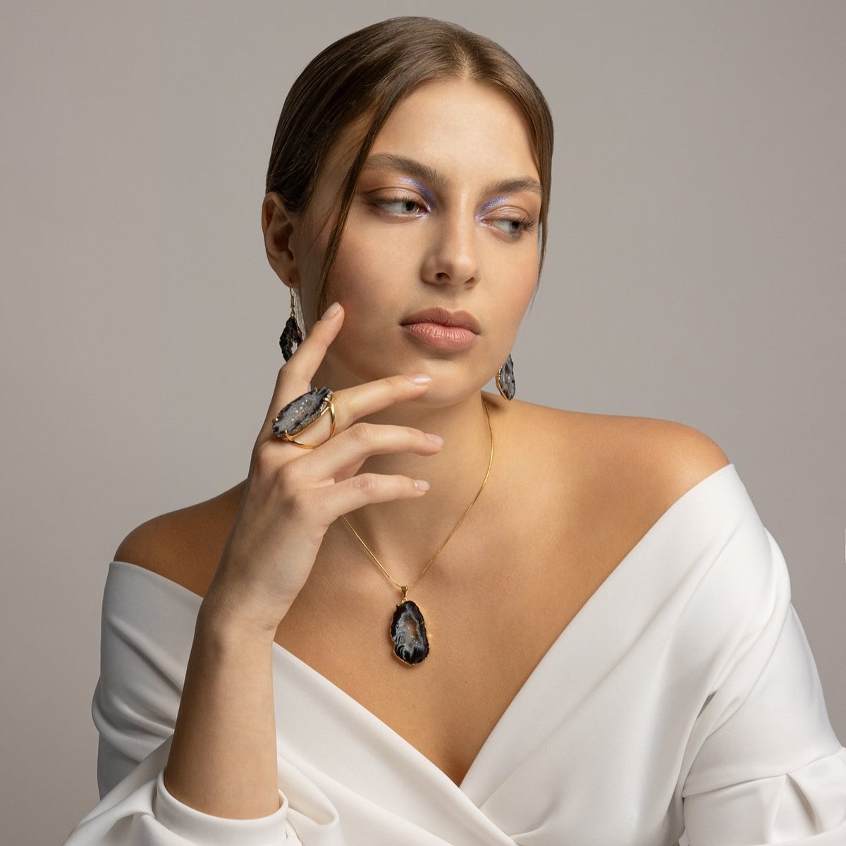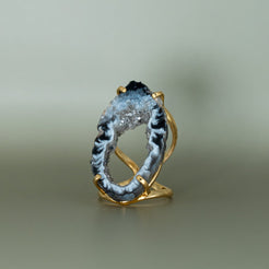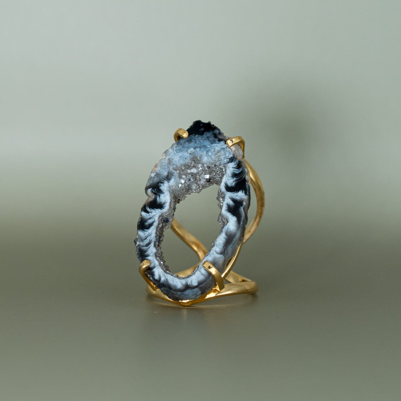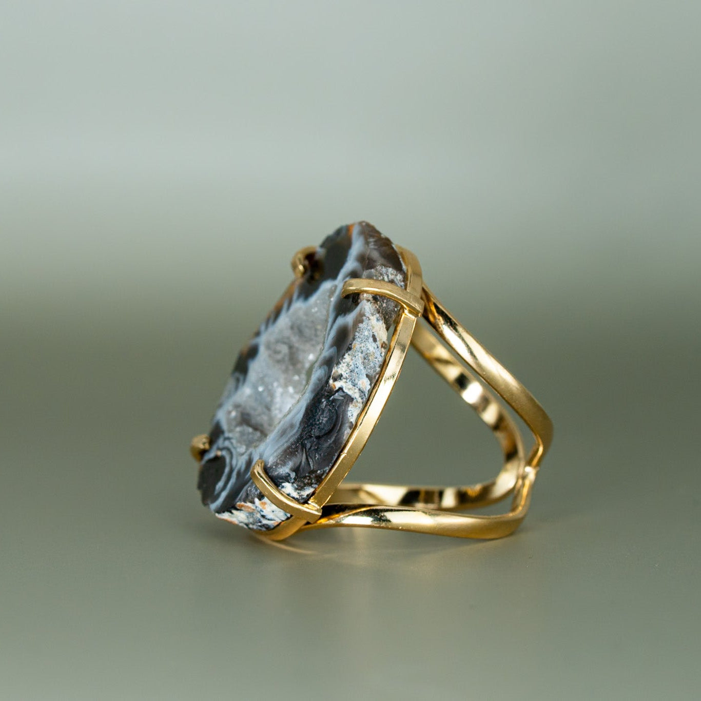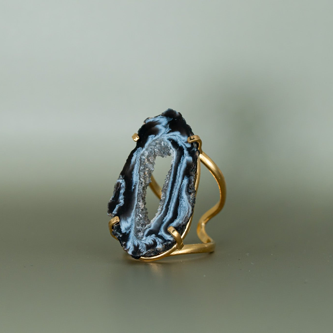 Agate Ring dunkel – 18K vergoldet, größenverstellbar