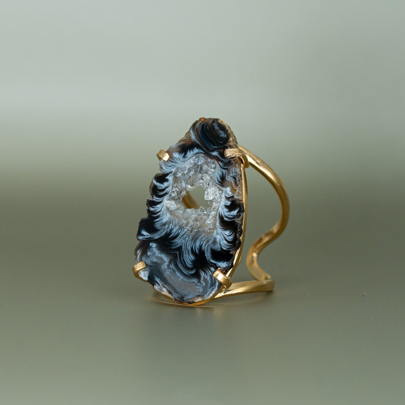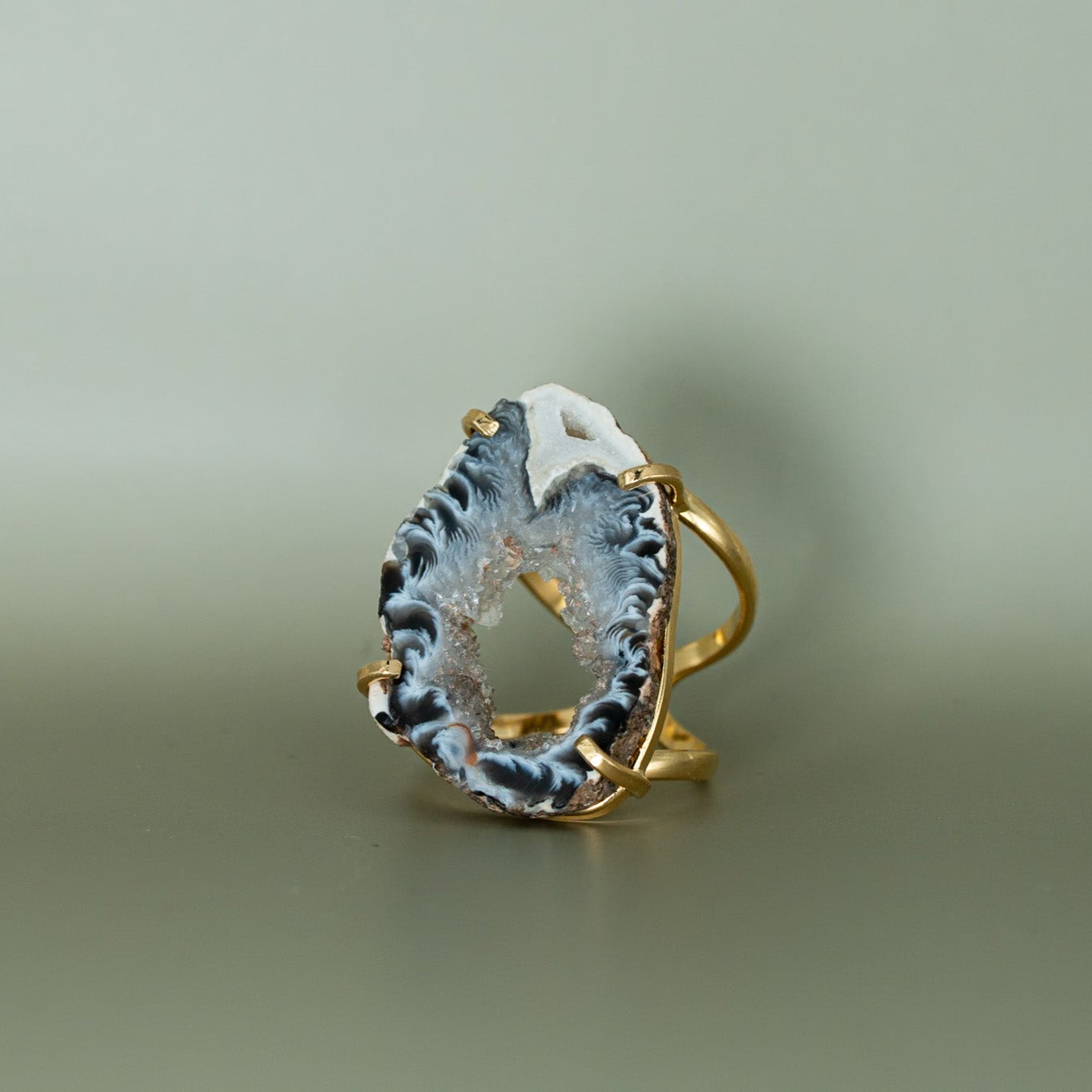 Natürliche Struktur trifft minimalistisches Design.Dieser handverlesene Agate Ring wird von einer hochwertigen 18K ve...