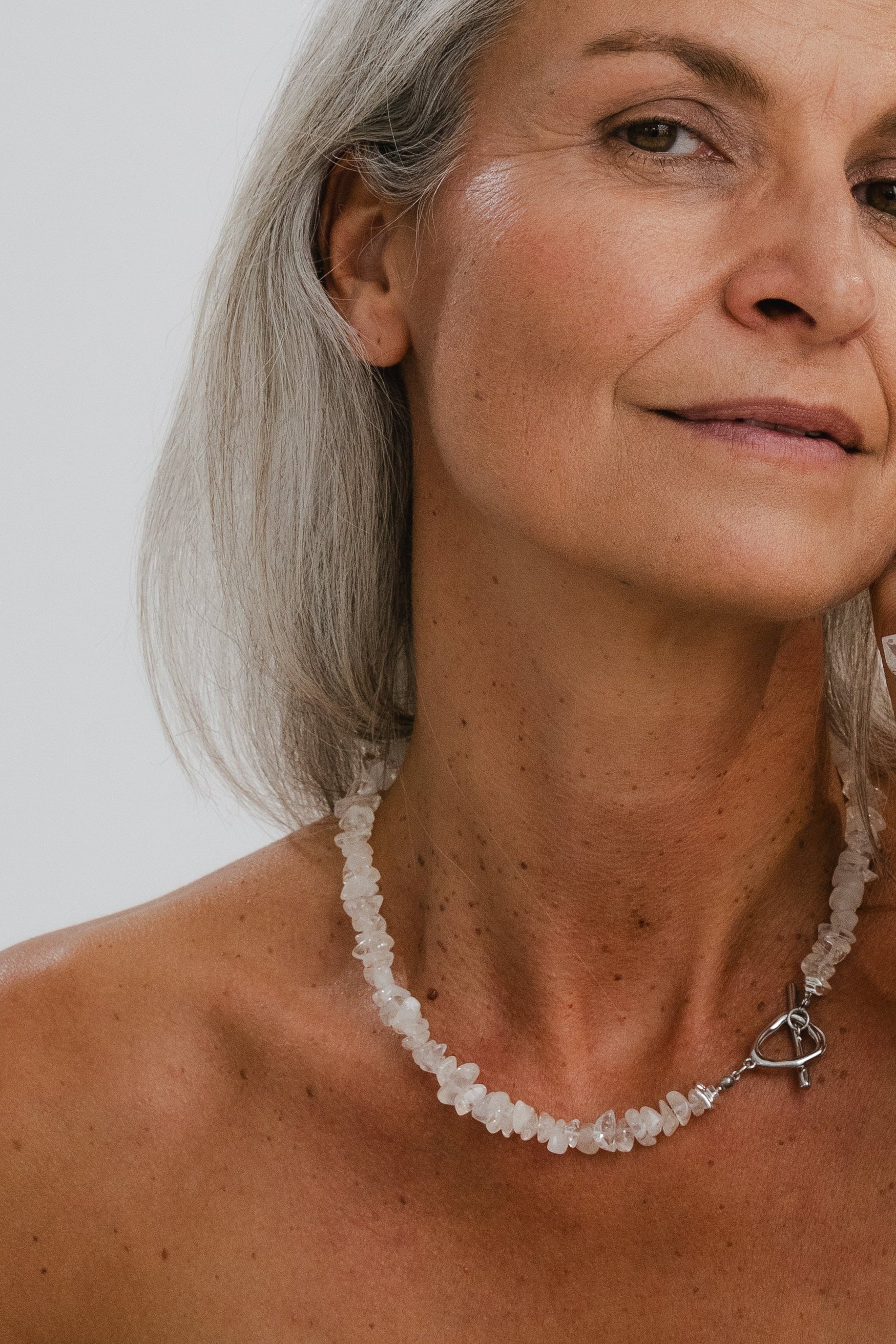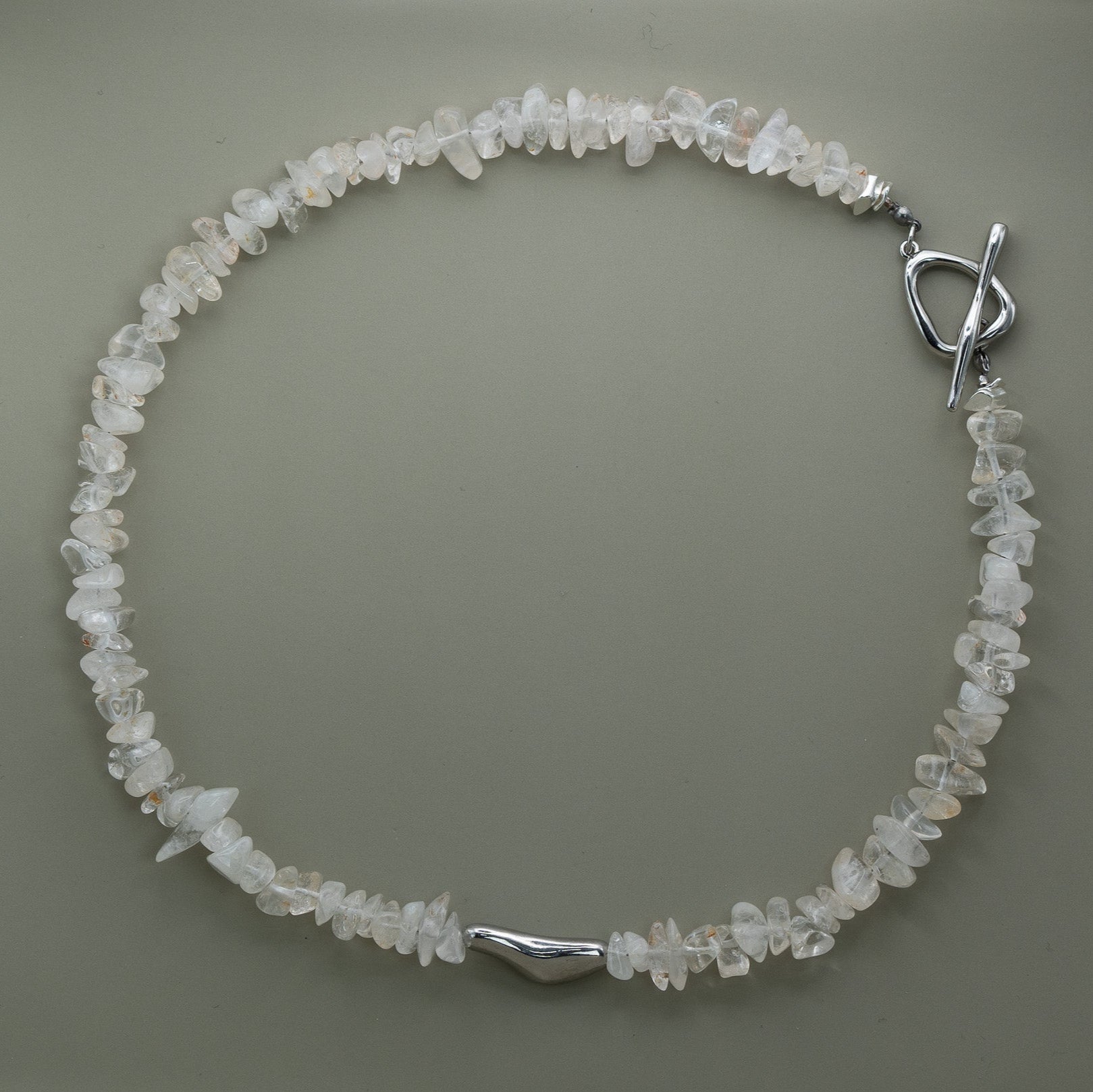 Diese Kette vereint die Klarheit des echten Bergkristalls mit einem eleganten, silberfarbenen Knebelverschluss. Die f...