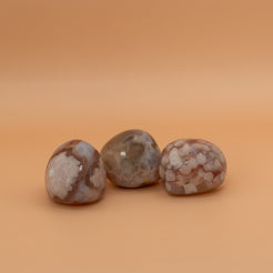 Der Kirschblütenachat Trommelstein begeistert mit seiner sanften, blumigen Maserung, die an zarte Kirschblüten erinne...