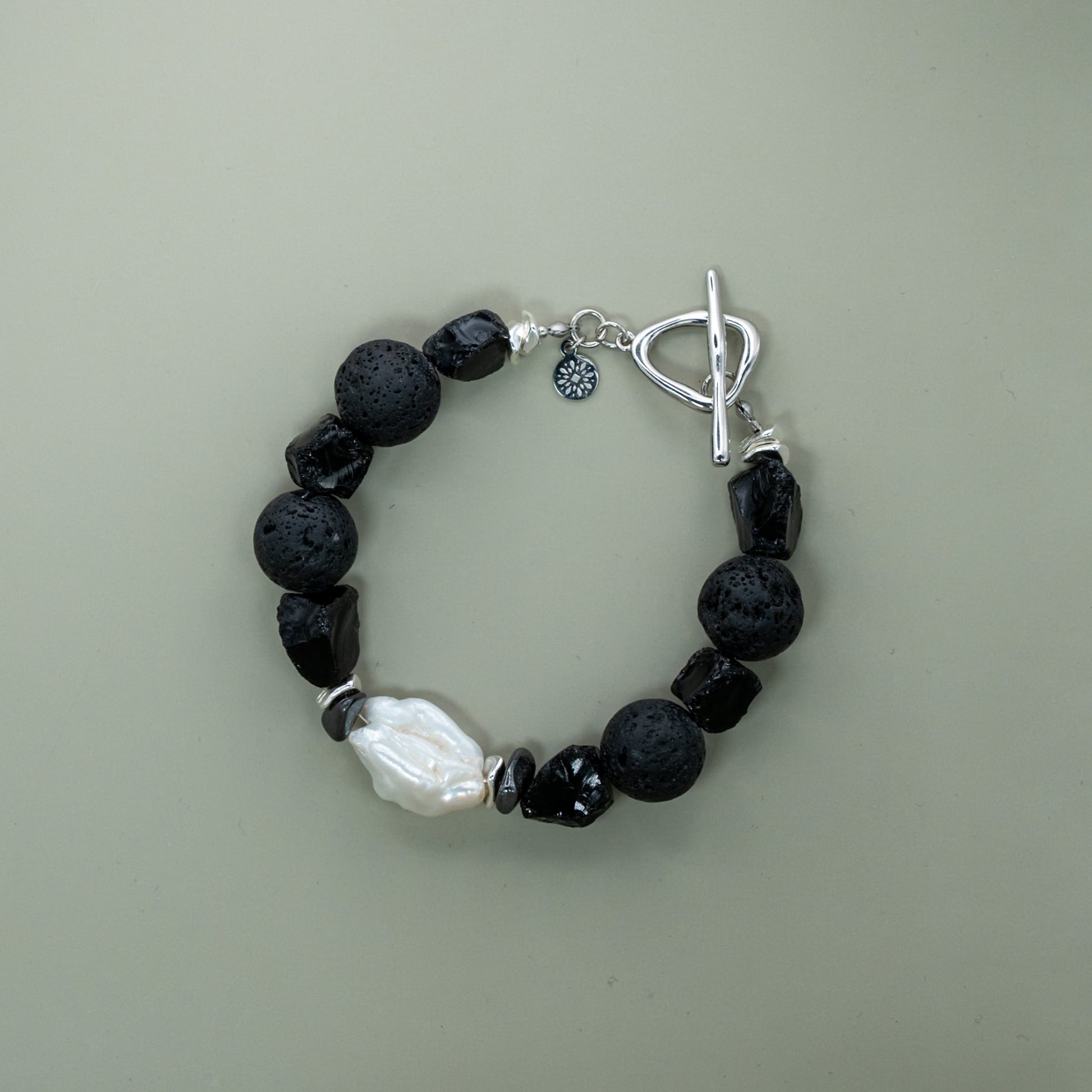 Obsidian & Lava Armband mit Armband mit Barockperle