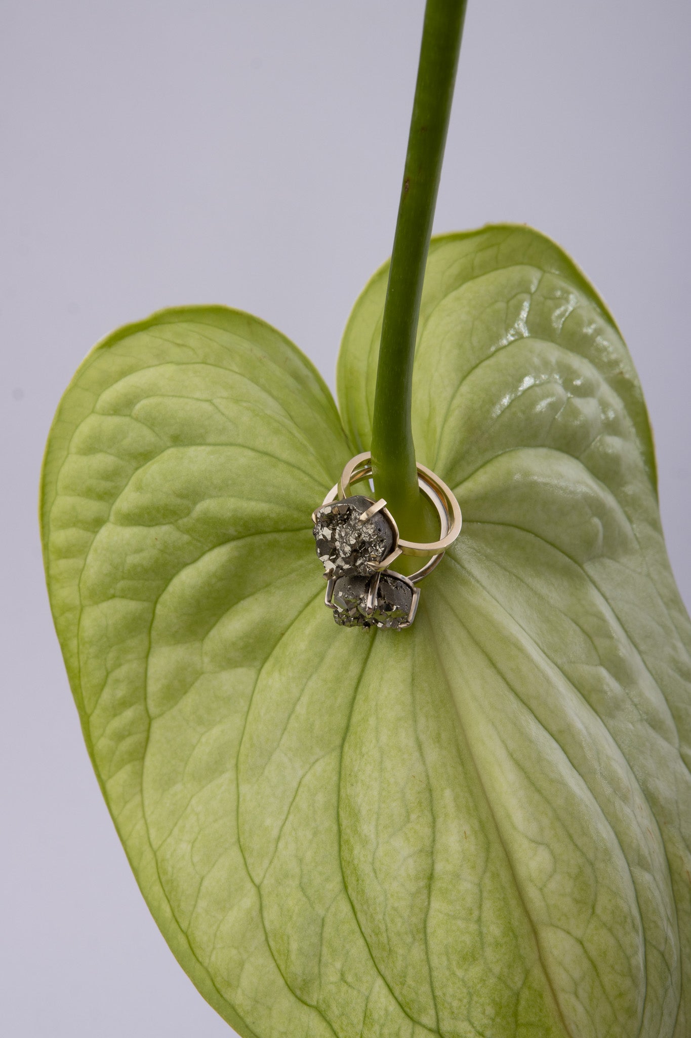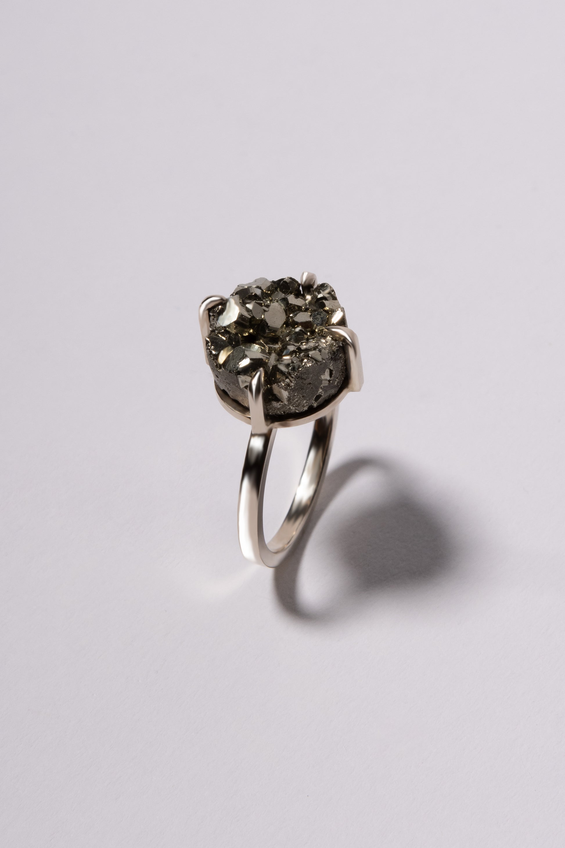 Luxuriöse Pyrit-Ring| 14 Karat (Weiß-)Gold | Handgefertigt in Pforzheim