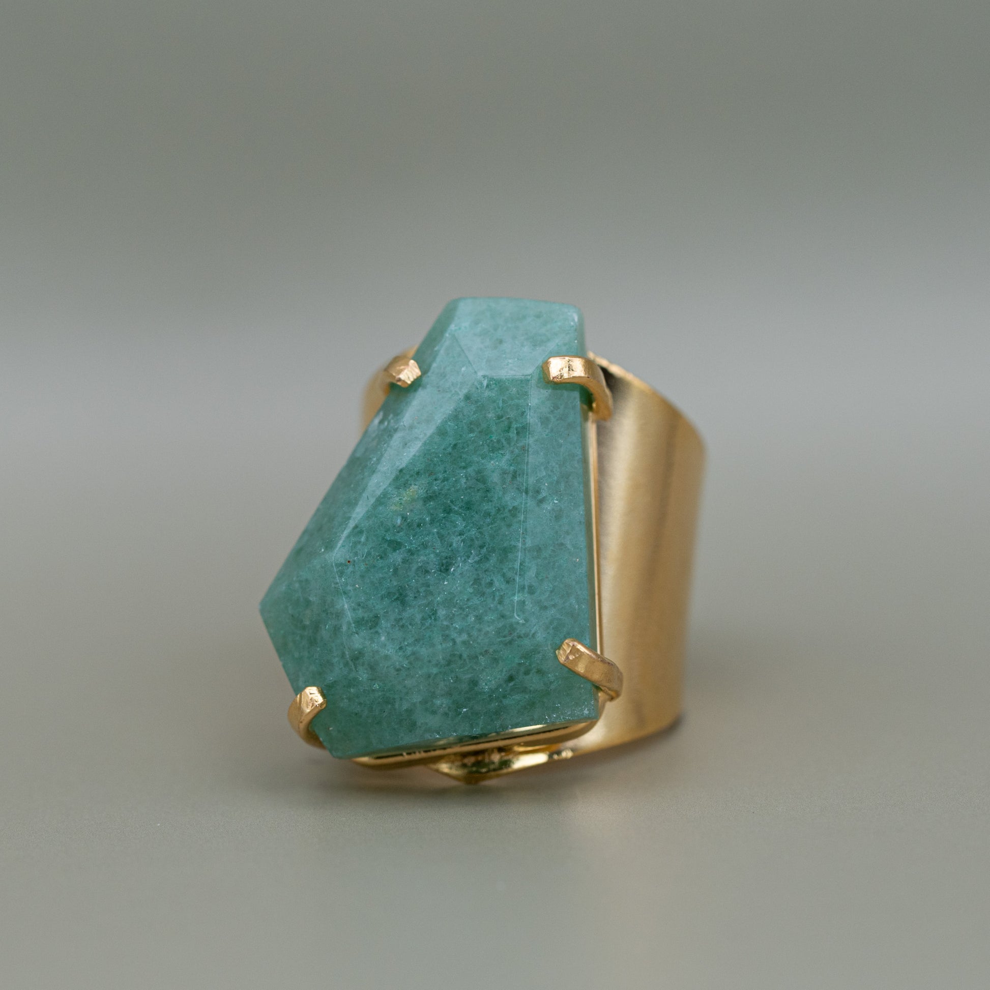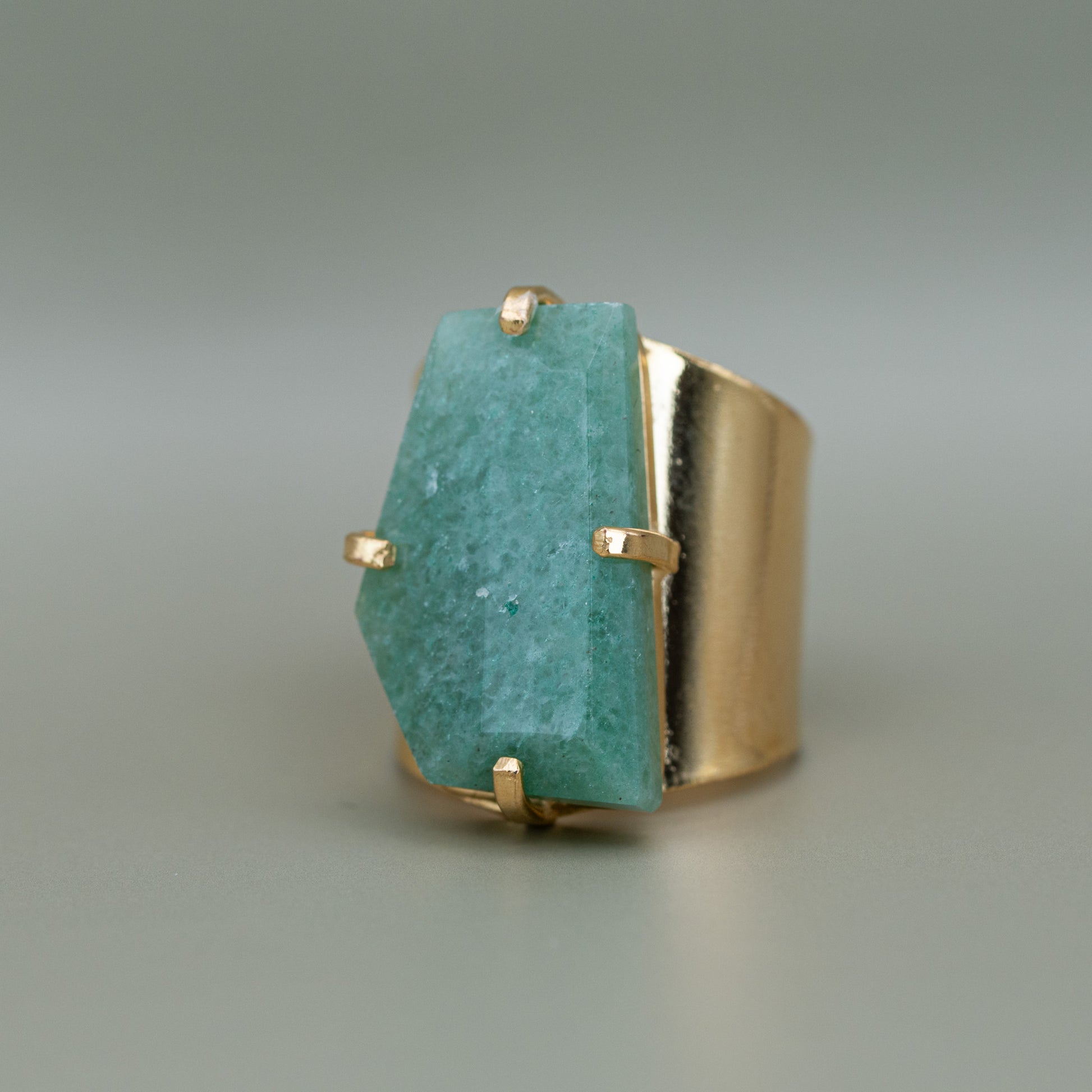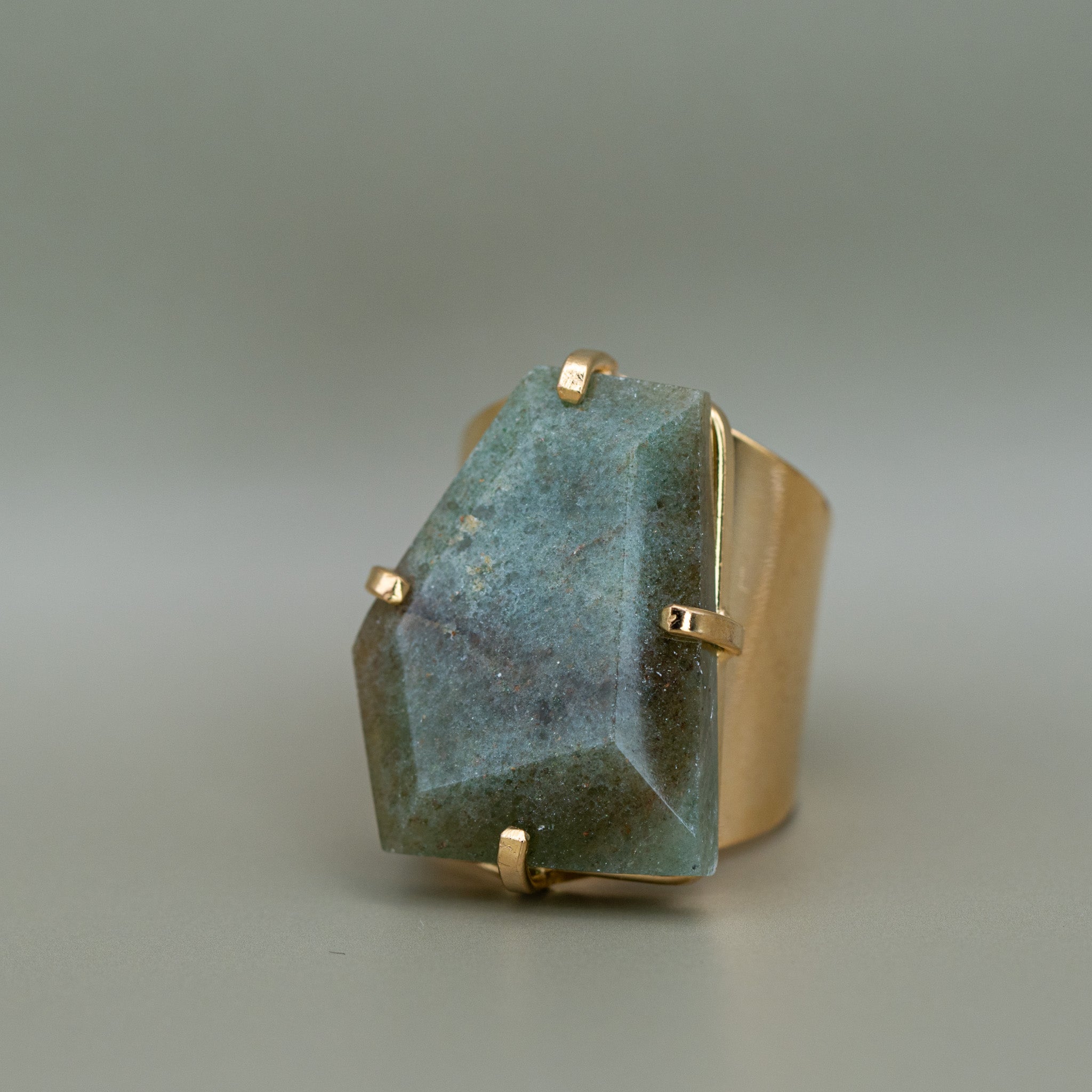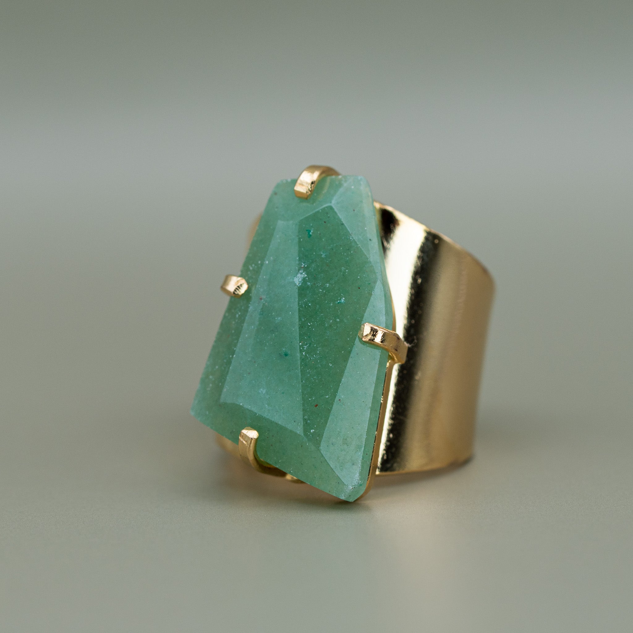 Grüner Quarz Ring – Größenverstellbar, 18K vergoldet